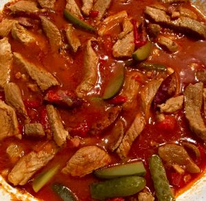 *** Ogórki kiszone również kroimy w paseczki i dodajemy do potrawy. Całość dusimy pod przykryciem przez około 15 minut ***