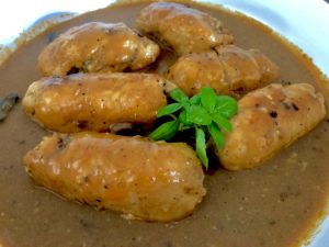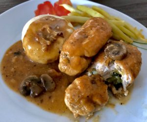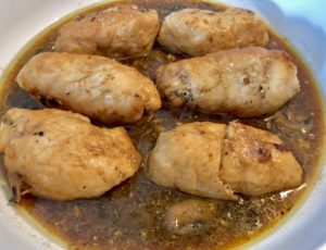 Roladki z kurczaka z cukinią w sosie pieczarkowym