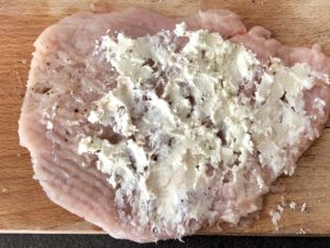 *** Na każdym rozbitym płacie mięsa rozsmarowujemy łyżkę serka śmietankowego ***