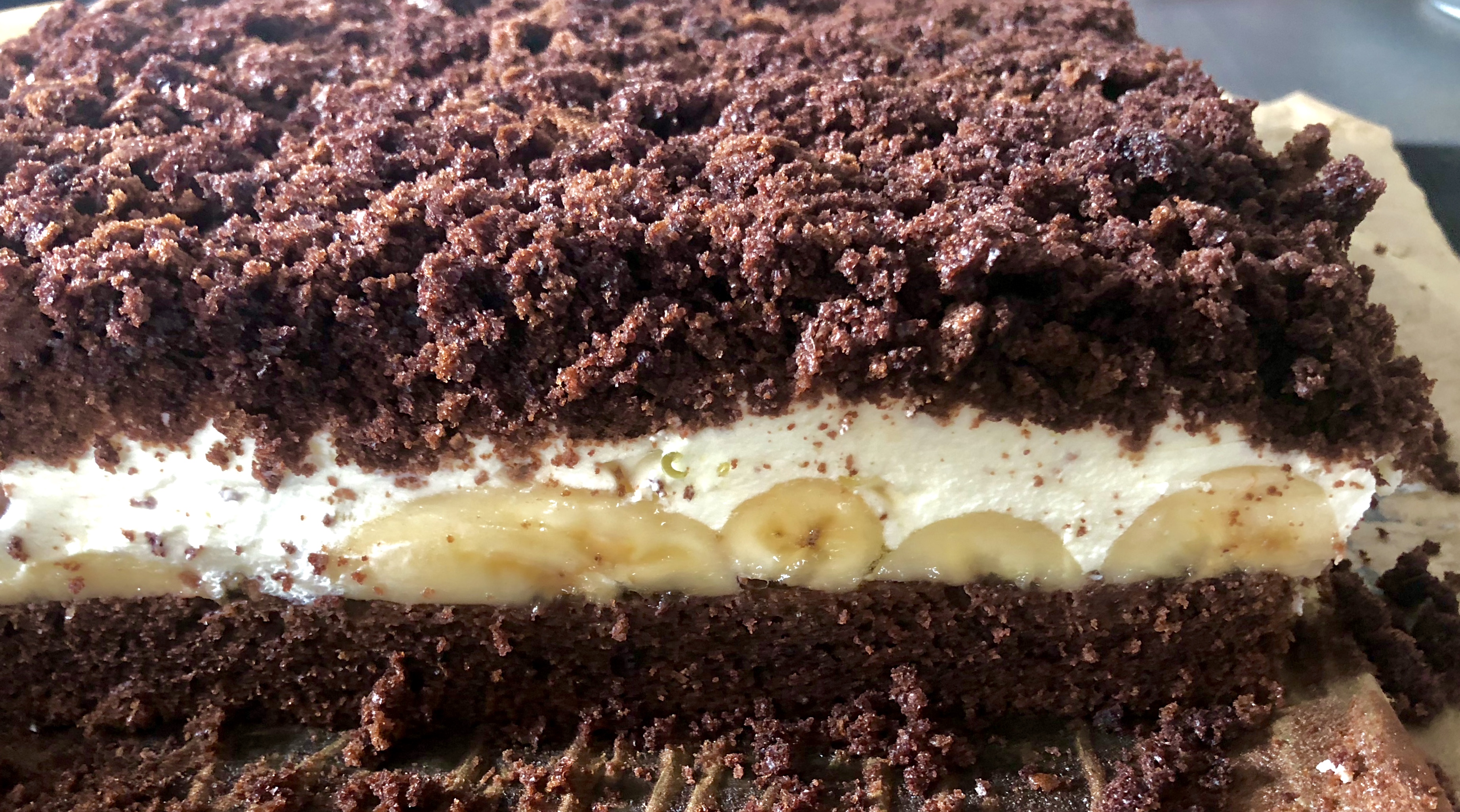 *** Masę wykładamy na banany i równomiernie rozprowadzamy ***