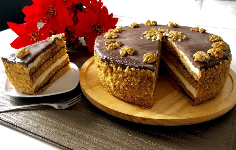 Pyszny, aromatyczny i przepięknie pachnący torcik piernikowy, Bożonarodzeniowy. Słodka masa grysikowa rewelacyjnie komponuje się z ciastem piernikowym oraz kwaskowatym dżemem tworząc smaczną kompozycję świąteczną. Polecam mój przepis na piernikowy torcik świąteczny.