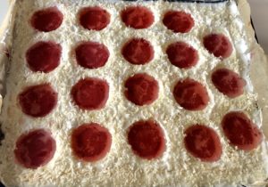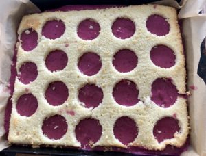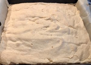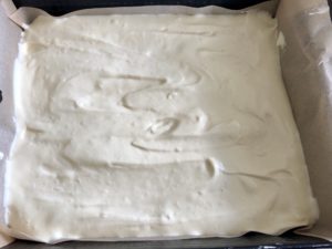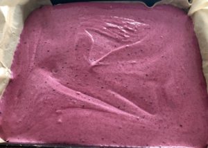 *** Ciasto przekładamy na foremkę wyłożoną papierem do pieczenia – moja blaszka ma wymiary 21×26 cm ***
