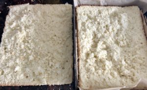 *** Biszkopt studzimy i przekrawamy na dwa blaty. Oba blaty nasączamy wodą wymieszaną z sokiem z cytryny ***
