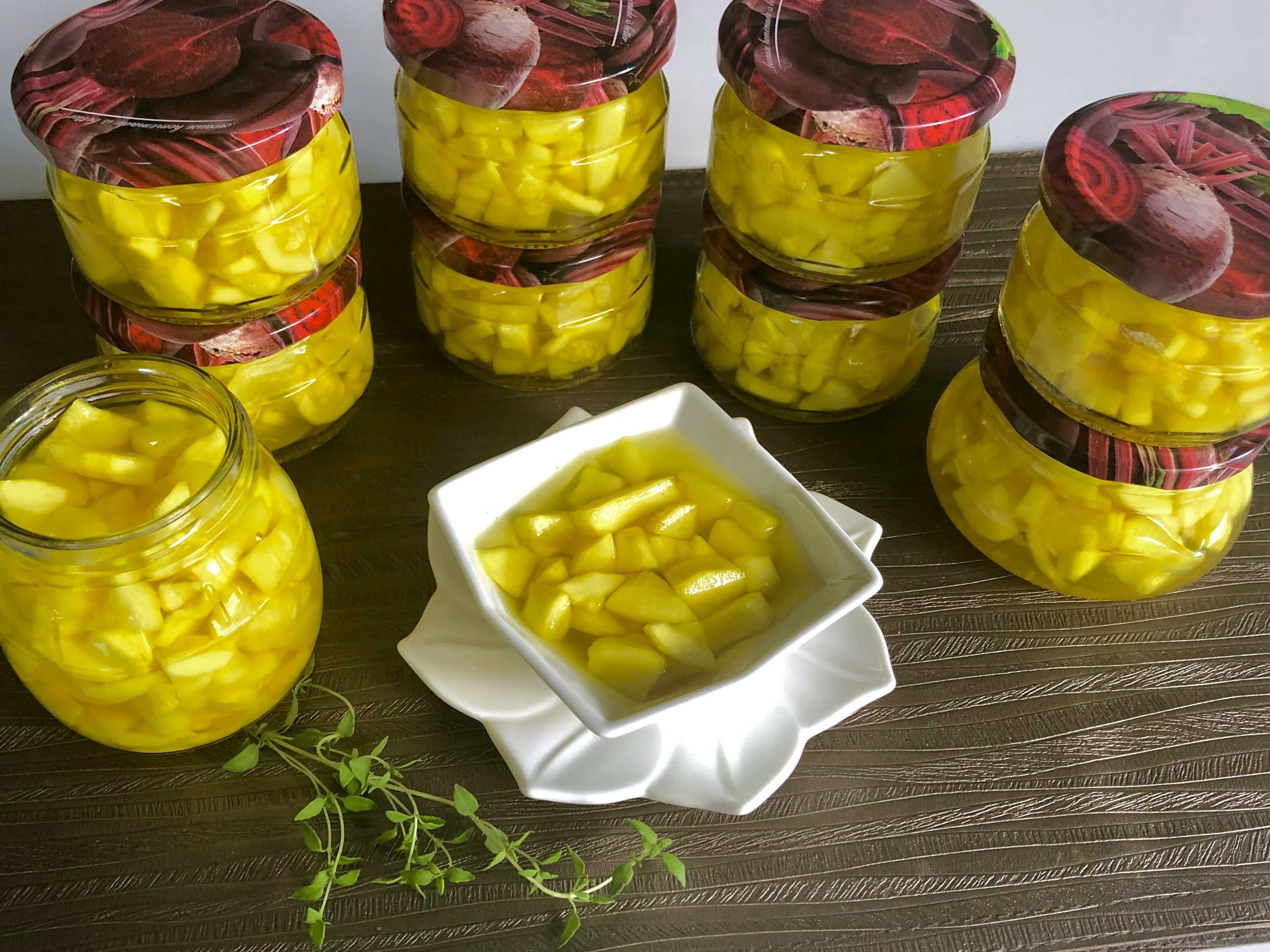 Słodziutka cukinia w zalewie, bardzo podobna w smaku do ananasa z puszki. Można ją dodawać do ciast, sałatek i deserów. Bardzo smaczna. Polecam!