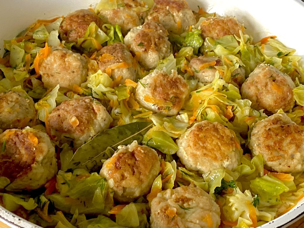 Szybkie, proste i przepyszne danie jednogarnkowe. Mięsno ryżowe klopsiki duszone w młodej kapuście i sosiku pomidorowym. Mini gołąbki możemy podać z ziemniaczkami lub świeżym pieczywem.