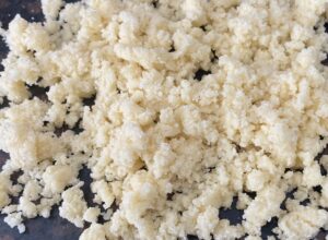 *** Przygotowujemy kruszonkę: wszystkie składniki na kruszonkę umieszczamy w naczyniu i rozcieramy palcami, aż powstaną grudki. Gotową kruszonkę umieszczamy w lodówce na czas przygotowania ciasta ***