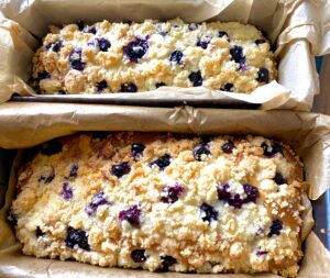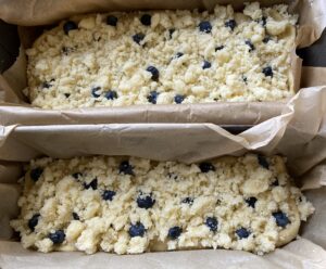 Puszyste, aromatyczne i wilgotne ciasto z kruszonką i borówkami. Zazwyczaj piekę je w dwóch keksówkach gdyż wówczas wychodzi wyższe niż w standardowej blaszce i bardziej wilgotne. Do przygotowania ciasta używamy samych żółtek, z pozostałych białek polecam zrobić przepyszną roladę bezową z owocami PRZEPIS TUTAJ (klik), którą wbrew pozorom robi się bardzo łatwo i szybko.