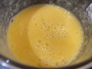 *** Przygotowujemy mus pomarańczowy: pomarańcze obieramy ze skórki, pozbawiamy błonek i kroimy w kostkę. Sok pomarańczowy zagotowujemy, zdejmujemy z ognia, wsypujemy galaretkę i mieszamy. Do galaretki przekładamy pomarańcza i wszystko razem blendujemy na gładki mus ***