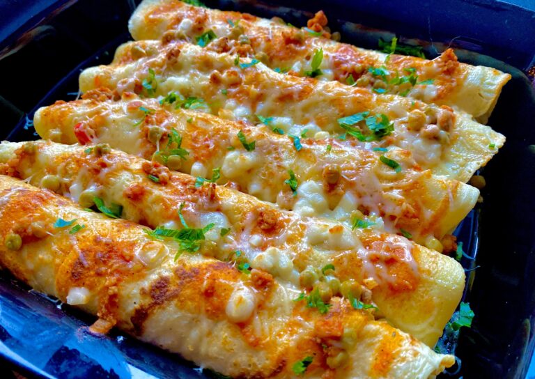 Mogą posłużyć za obiad, kolację lub danie na przyjęcie. Chrupiące i treściwe naleśniki zapiekane z pysznym farszem. Palce lizać!