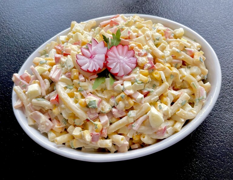 Prosta, bardzo smaczna i kolorowa sałatka makaronowa, którą wykonamy z zaledwie z pięciu podstawowych składników i doprawimy pysznym, kremowym sosem. Rewelacyjne połączenie smakowe, które z pewnością zachwyci podniebienia wszystkich gości. Polecam!
