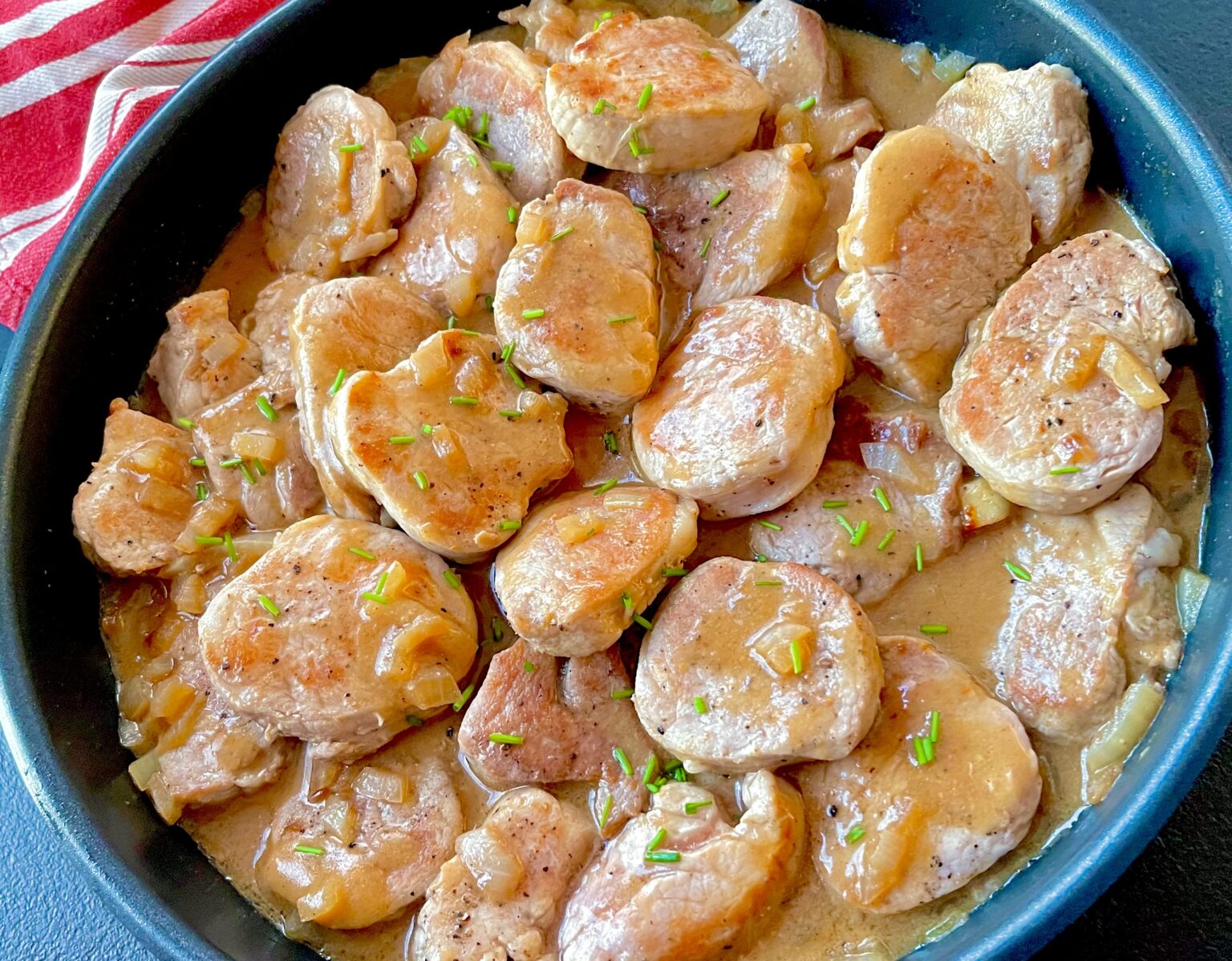 Szybki i niezwykle smaczny obiad. Soczyste, delikatne i idealnie kruche mięso wieprzowe duszone w pysznym i bardzo aromatycznym sosie. Polędwiczki możemy podać z ziemniaczkami, makaronem albo kaszą i ulubioną surówką. Polecam!