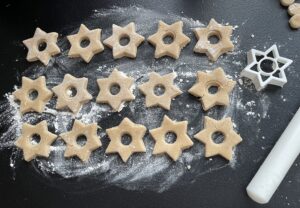 *** Po tym czasie ciasto rozwałkowujemy partiami na grubość około 0,5 centymetra i wycinamy foremkami pierniczki ***