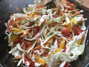 *** Wszystkie pokrojone warzywa dokładamy do kapusty, mieszamy ***