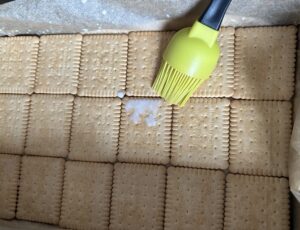 *** Na dnie blaszki wyłożonej papierem do pieczenia wykładamy warstwę herbatników (moja foremka ma wymiary 32 x 20 cm) ***