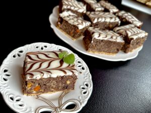 Wilgotne, bardzo smaczne i efektowne ciasto z dużą ilością maku oraz bakali, wykończone elegancką polewą. Ideale na święta i szczególne okazję. Polecam!