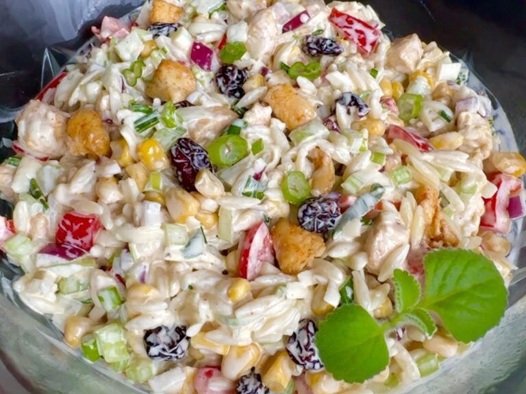 Przepis na pyszną sałatkę z kurczakiem, makaronem, warzywami i rewelacyjnym sosem. Wyśmienite połączenie smakowe, które będzie prawdziwym hitem na każdym przyjęciu, spotkaniu z bliskimi lub w święta. Sałatka jest wyrazista, sycąca i mega smaczna. Polecam!
