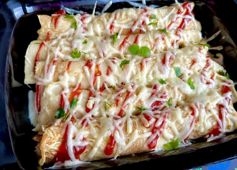 Na koniec naleśniki po chłopsku wkładamy do piekarnika nagrzanego do temperatury 200’C i pieczemy przez około 15-20 minut – bez przykrycia.