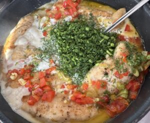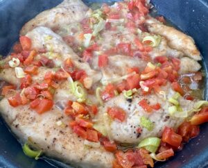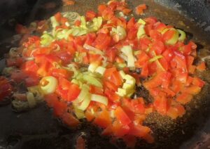 *** Filety przekładamy na talerz, a na pozostałym tłuszczu podsmażamy przez chwilę drobno pokrojonego pora i paprykę ***
