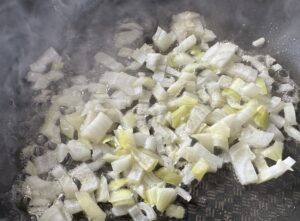 *** Przygotowujemy farsz. Na patelni rozpuszczamy masło i szklimy na nim cebulkę ***