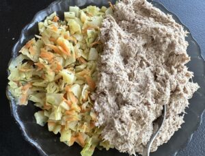 *** Dodajemy drobno pokrojoną kapustę, mieszamy ***