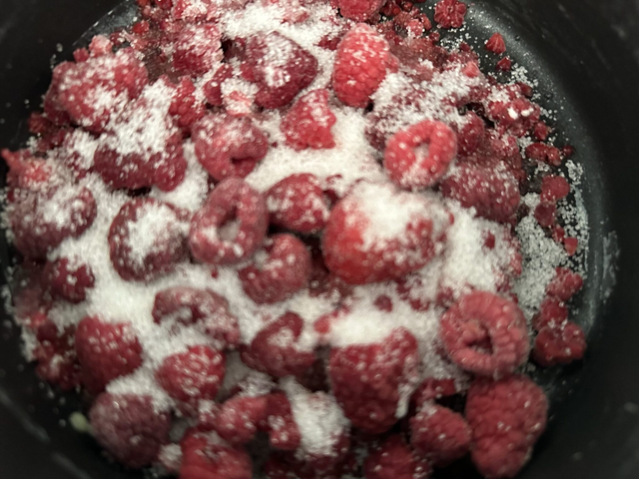 *** Maliny przekładamy do garnka,  zasypujemy cukrem i zagotowujemy ***