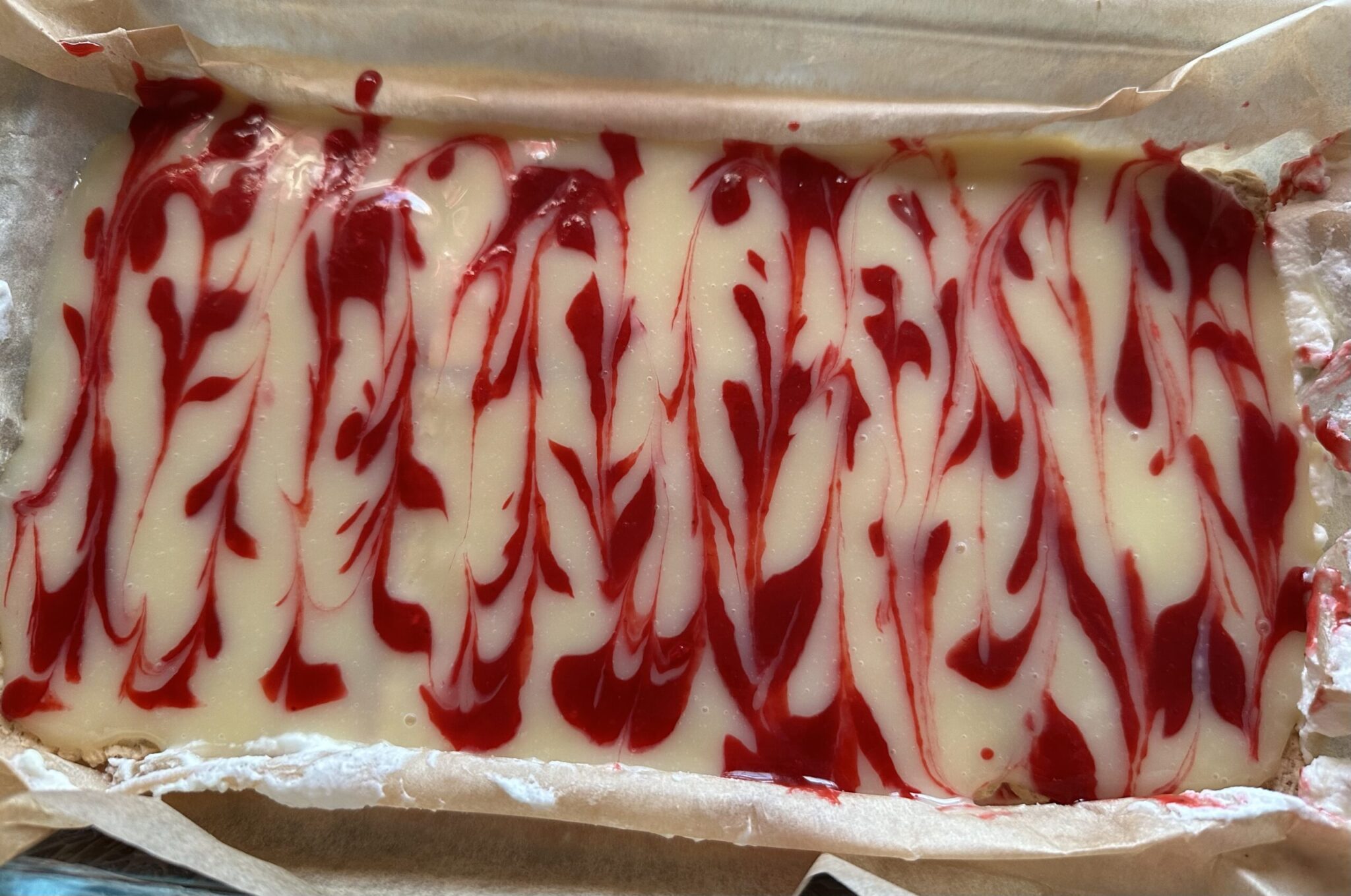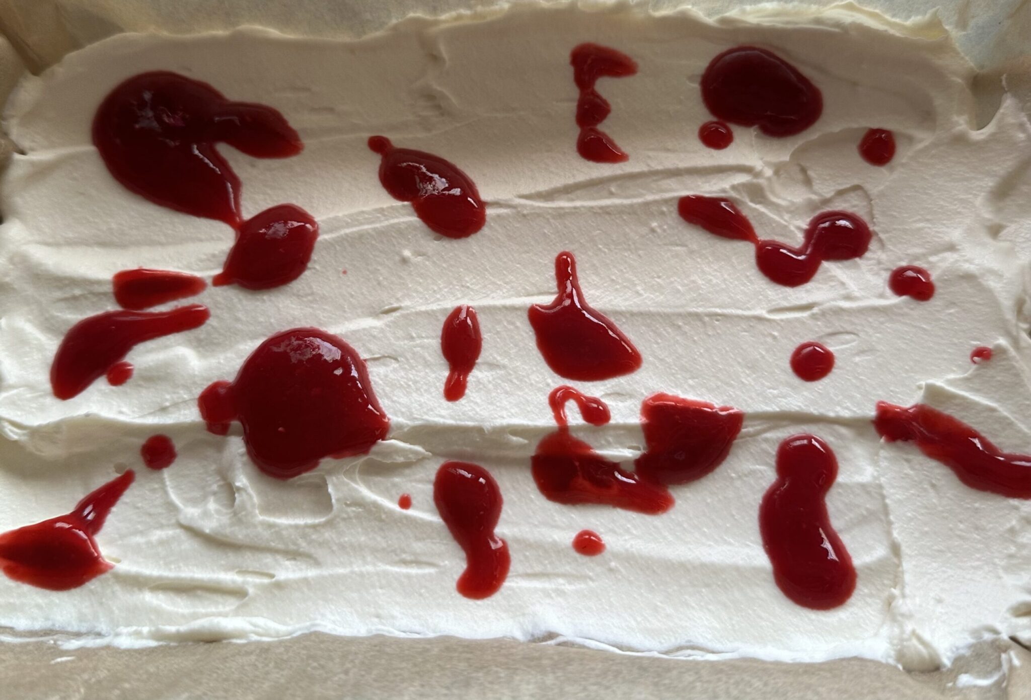 *** Smarujemy drugą częścią kremu i ponownie robimy wzorki z sosu malinowego ***