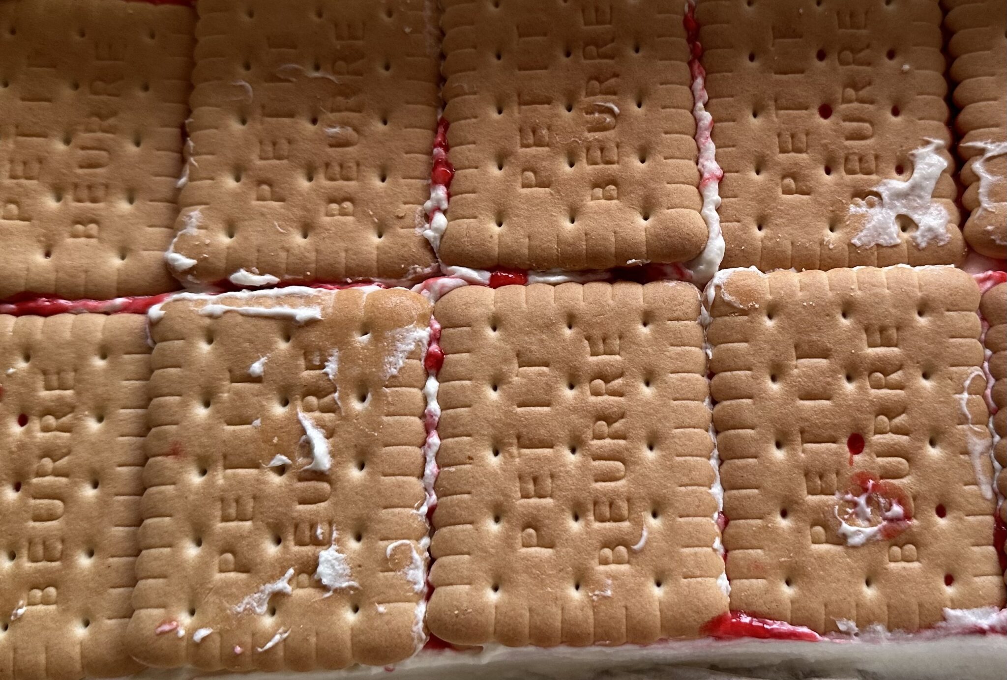 *** Na herbatnikach wykładamy połowę kremu śmietankowego, wyrównujemy ***