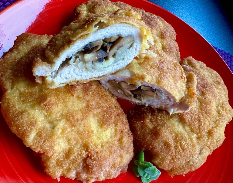 Kieszonki schabowe z kapustą i pieczarkami