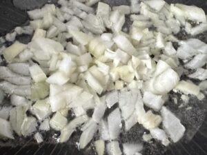 *** Cebulę kroimy w kostkę i podsmażamy na niewielkiej ilości oleju ***