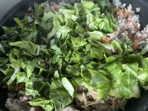 *** Mieszamy, smażymy przez chwilę i dodajemy grubo poszatkowaną kapustę ***