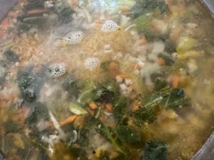 *** Zmniejszamy moc palnika do małej i gotujemy pod przykryciem przez około 10 minut. Po tym czasie wsypujemy do zupy kaszę bulgur ***