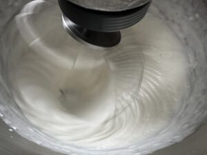 *** Gdy galaretka wystygnie, przygotowujemy krem truskawkowy. śmietankę kremówkę ubijamy z cukrem pudrem prawie na sztywno ***