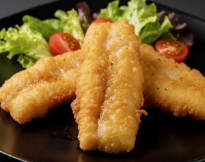 Pyszna propozycja dla miłośników smażonej ryby, z dodatkową nutą wyrazistych smaków. Podstawą tego dania jest pyszne, chrupiące ciasto, które otula delikatny filet z dorsza. Całość tworzy sycące i aromatyczne danie, które świetnie smakuje na gorąco, prosto z patelni.