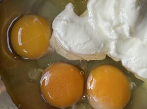 Do osobnej miski wbijamy jajka i dodajemy jogurt