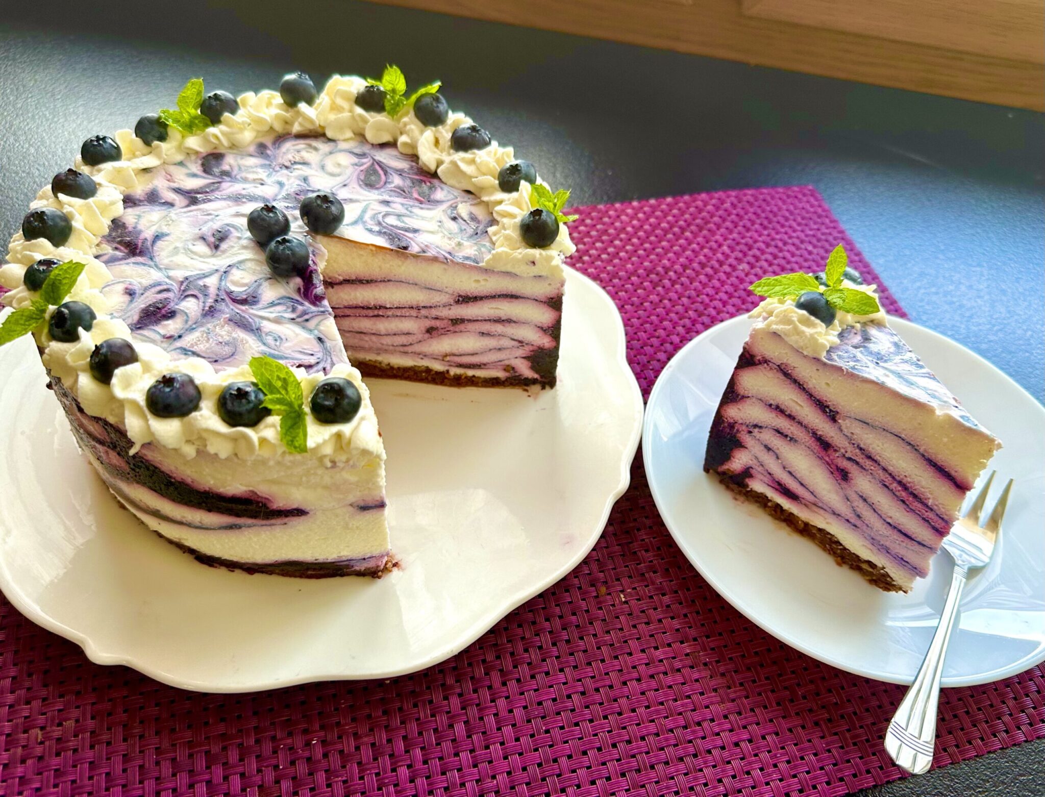 Po tym czasie na ciasto wylewamy delikatnie pozostałą masę jagodową, która po stężeniu stworzy żelkę na wierzchu (jeśli masa zdążyła nam stężeć, to należy ją bardzo delikatnie podgrzać i rozmieszać)