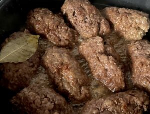 Roladki mielone ponownie dodajemy na patelnie, mieszamy delikatnie z sosem i podgrzewamy jeszcze przez kilka minut