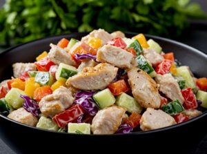 Przepis na pyszną sałatkę z kurczakiem, makaronem, warzywami  i rewelacyjnym sosem. Wyśmienite połączenie smakowe, które będzie prawdziwym hitem na każdym przyjęciu, spotkaniu z bliskimi lub w święta. Sałatka jest wyrazista, sycąca i mega smaczna.