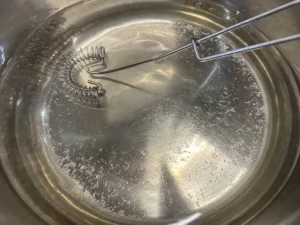 - W zmywarce – Słoiki układamy w zmywarce wieczkami do dołu, ustawiamy cykl myjący na minimum 75’C lub wyższy. Nie dodajemy żadnych detergentów myjących! Włączamy zmywarkę i czekamy, aż zakończy program. Po tym czasie otwieramy drzwiczki i pozostawiamy przetwory do wystygnięcia.