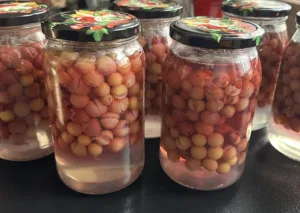 - W piekarniku – Słoiki układamy na blaszce, tak aby nie stykały się ze sobą ściankami, wkładamy do zimnego piekarnika, ustawiamy temperaturę na 130’C i pasteryzujemy przez 30 minut. Po tym czasie wyłączamy piekarnik, uchylamy drzwiczki i zostawiamy słoiki do wystudzenia.