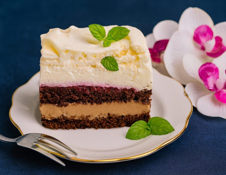 To ciasto to połączenie różnych faktur i smaków – od wilgotnego, kakaowego spodu, przez kremową słodycz, aż po puszystą bezę. Idealne na wyjątkowe okazje, święta lub po prostu do filiżanki kawy w leniwe popołudnie.