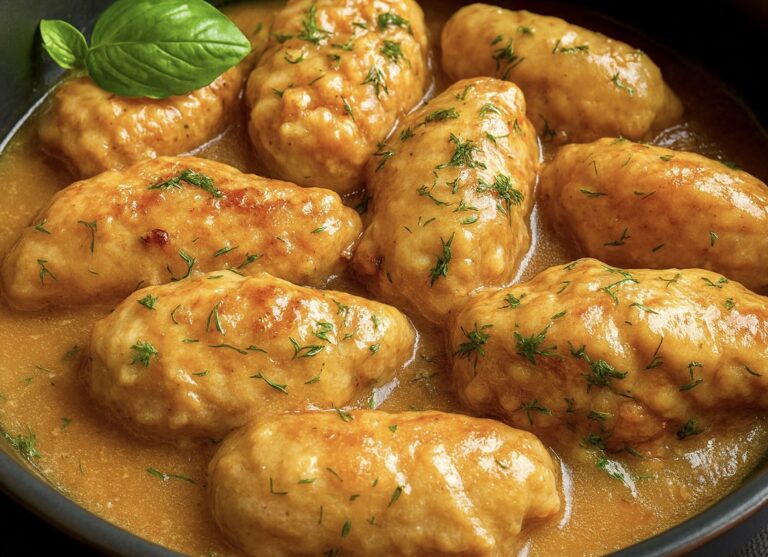 Jeśli lubisz domowe obiady, które rozpieszczają podniebienie, to te roladki drobiowe w sosie pieczeniowym będą świetnym wyborem! Soczyste mięso z piersi kurczaka, zawinięte z pysznym nadzieniem i duszone w aksamitnym, aromatycznym sosie – tworzą danie, które zachwyci każdego. Zraziki są niezwykle delikatne, miękkie i pełne smaku, a sos sprawia, że całość dosłownie rozpływa się w ustach. Idealnie komponują się z ziemniakami, kaszą lub kluskami śląskimi, a do tego wystarczy porcja surówki, by stworzyć doskonały, pożywny obiad. To danie, które świetnie sprawdzi się zarówno na codzienny obiad, jak i na niedzielny stół – eleganckie, a jednocześnie proste w przygotowaniu.