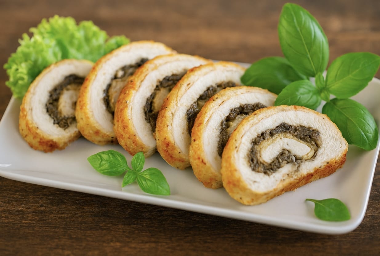 Pod złocistą serową skorupką kryje się miękki, rozpływający się w ustach farsz, który zachwyci nawet najbardziej wymagających smakoszy. Rolada pięknie się prezentuje na stole, dlatego idealnie sprawdzi się na rodzinnym spotkaniu, świątecznym stole czy przyjęciu w gronie przyjaciół.