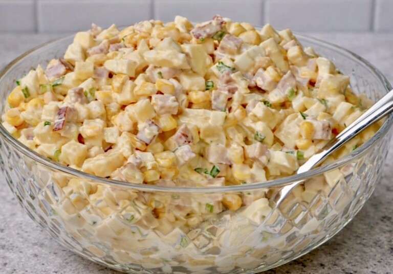 Ta pyszna, ekspresowa sałatka to prawdziwy ratunek, gdy potrzeba czegoś szybkiego, a jednocześnie sycącego i pysznego. Delikatne jajka idealnie łączą się z wyrazistym serem i soczystą szynką, a słodka kukurydza dodaje całości przyjemnej lekkości i chrupkości. Wszystko spaja kremowy sos, który podkreśla smak składników, nie dominując ich.