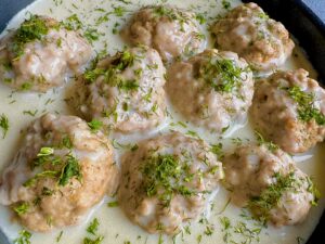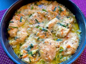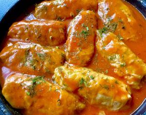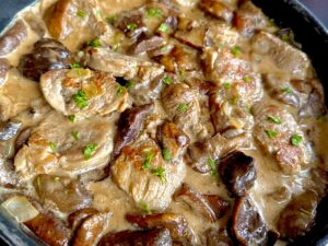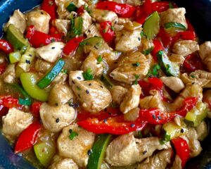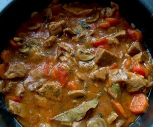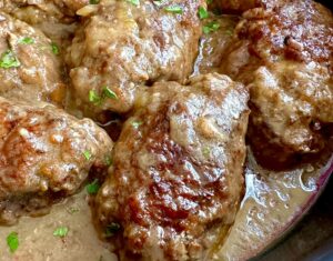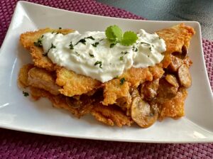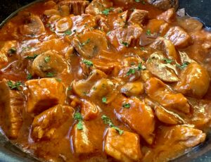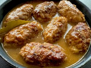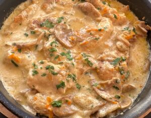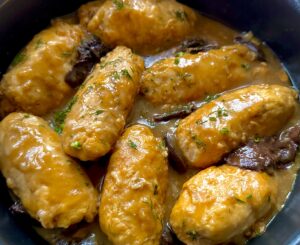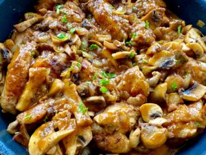 Skrzydełka w sosie z pieczarkami i karmelizowaną cebulką