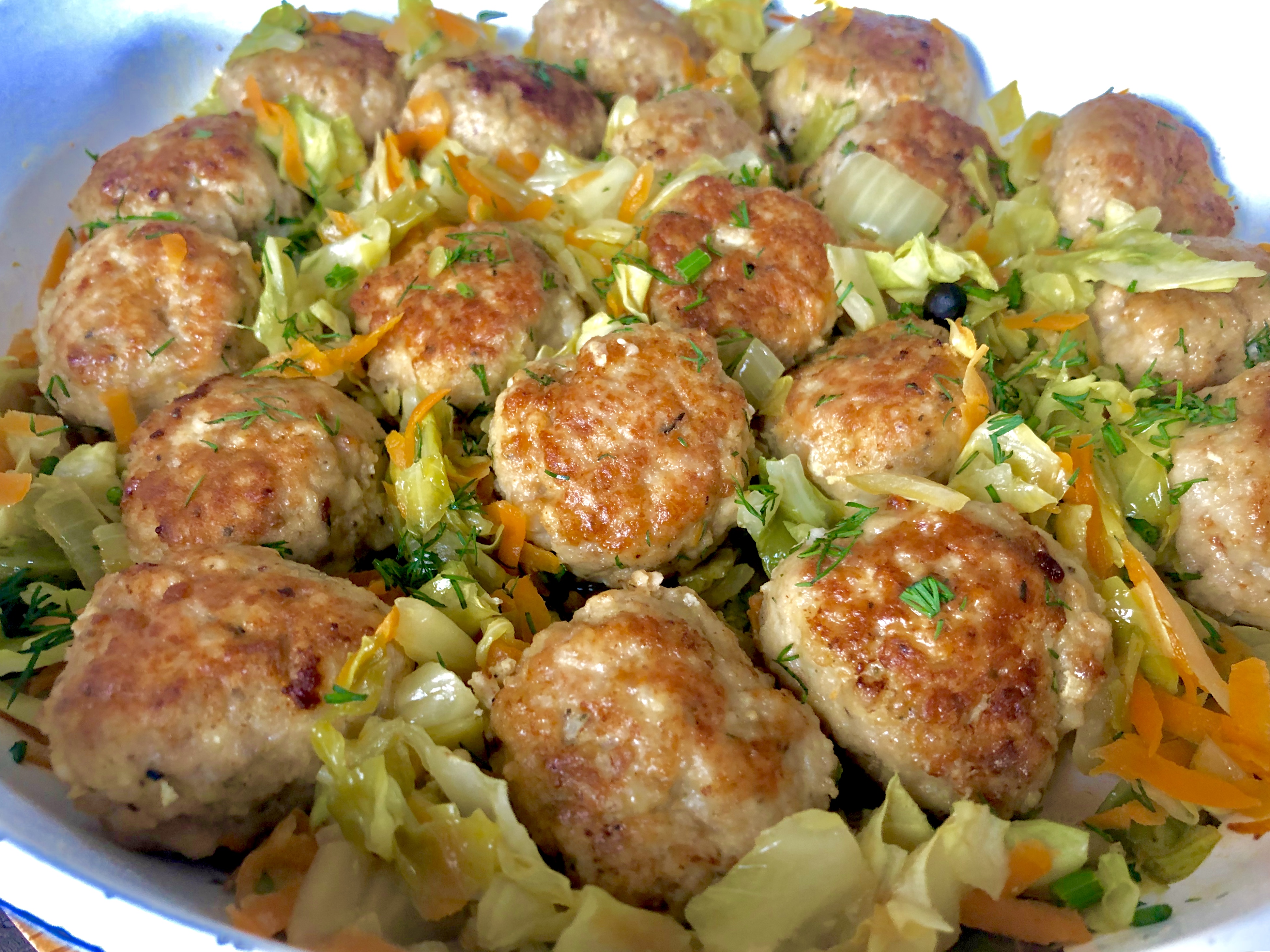 Wieprzowo-jaglane klopsiki duszone w młodej kapuście